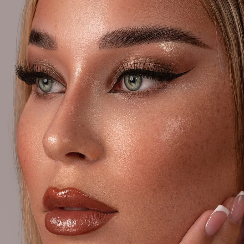 Ein sorgfältig abgestimmter Look, der Dich den ganzen Tag über sicher fühlen lässt. Inklusive Wimpern, Bodyglow und Eyelifting für einen offenen, wachen Blick.